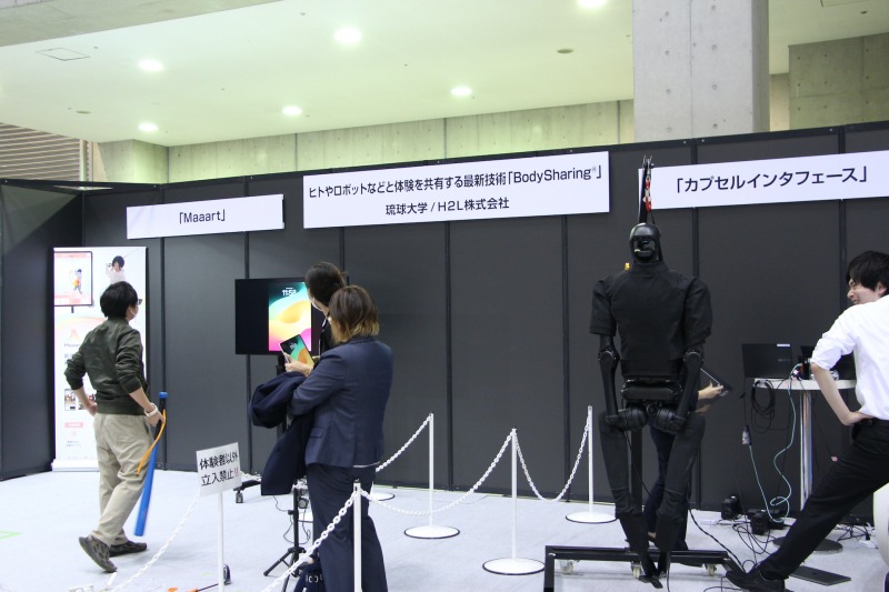 身体の動きや力加減といった“内側の情報”をデジタル化し、遠隔地のロボットや別の身体に伝える。そんなSF的な発想を実現しようとする技術が会場で紹介され、多くの来場者が足を止めていた。琉球大学とH2Lが共同で展開する「BodySharing®」関連の展示である。