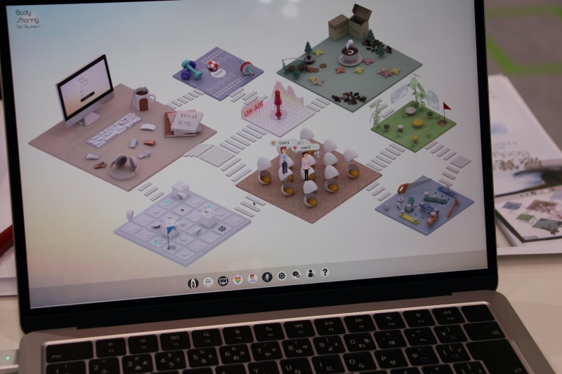「BodySharing® for Business」は、筋変位センサによってリモートワーカーの身体状態を把握するサービスだ。メタバース空間上で社員の状態を可視化し、緊張の度合いや疲労感などを捉えることができる。発話が難しい障がい者支援にも応用可能で、体調や心身の不調を客観的に把握することで、周囲が適切にサポートできる点が強みだ。