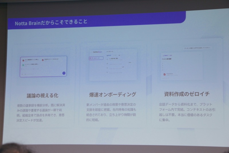 今回の発表の中心となったのが、音声ファーストAIエージェント「Notta Brain」だ。
