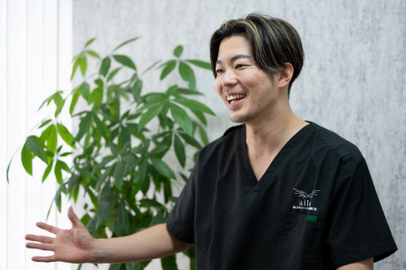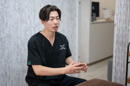 私は幼少期に器械体操を習っており、その頃から柔道整復師の先生によくお世話になっていました。丁寧に症状を聞き、親身に施術をしてくれる先生の姿を見て、「自分も人に寄り添い、役に立ちたい」と思い、柔道整復師を志しました。