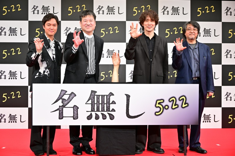 名優・佐藤二朗が原作・脚本・主演を務めた話題の映画『名無し』(5月22日公開)。4月27日にはイイノホールにて完成披露試写会が実施され、主演の佐藤二朗、共演の丸山隆平、佐々木蔵之介、そして城定秀夫監督が参加した。