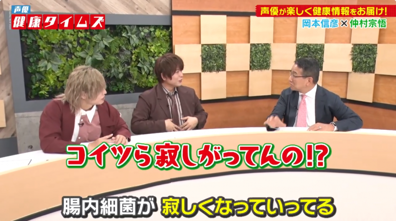 出演するのは、数々の人気作で活躍する岡本信彦と仲村宗悟。そこに、腸内細菌研究の第一人者である京都府立医科大学大学院医学研究科教授の内藤裕二氏がゲストとして加わり、「腸活の新常識」をテーマにした全3話が同日配信された。