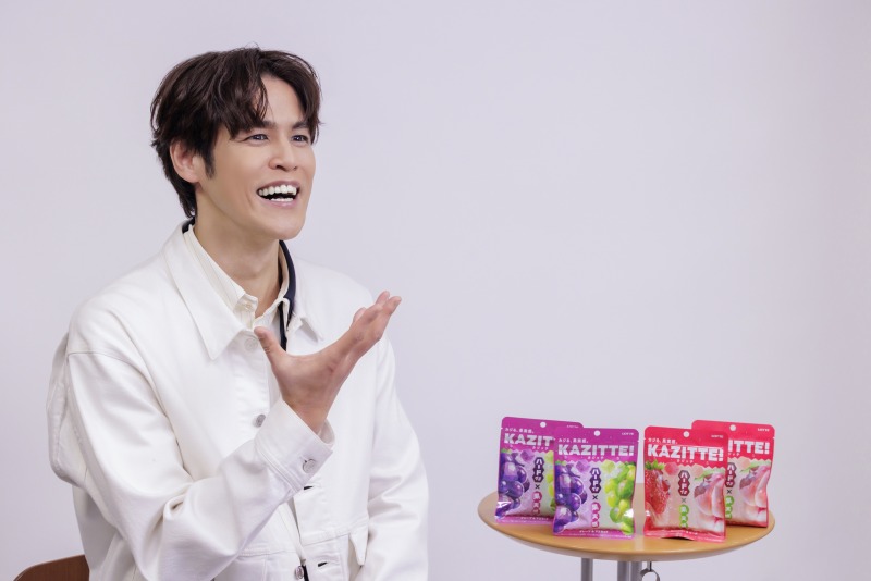 そのハイテンションぶりとは一転、撮影後インタビューでは、商品への率直な好感も語っています。『カジッテ』を食べた感想を聞かれると、「美味しかったです!噛みごたえもすごく気持ち良くて。噛む、かじるってことを僕も最近大事にしているのですが、今回の『カジッテ』は噛みごたえも気持ち良く、その甘酸っぱさも僕にはちょうどいい。好きな感覚だったので、これはちょっとリピートしちゃいそうですね」とコメント。商品名どおり“かじる”感覚の気持ちよさが、宮野さんの感覚にもハマったようです。
