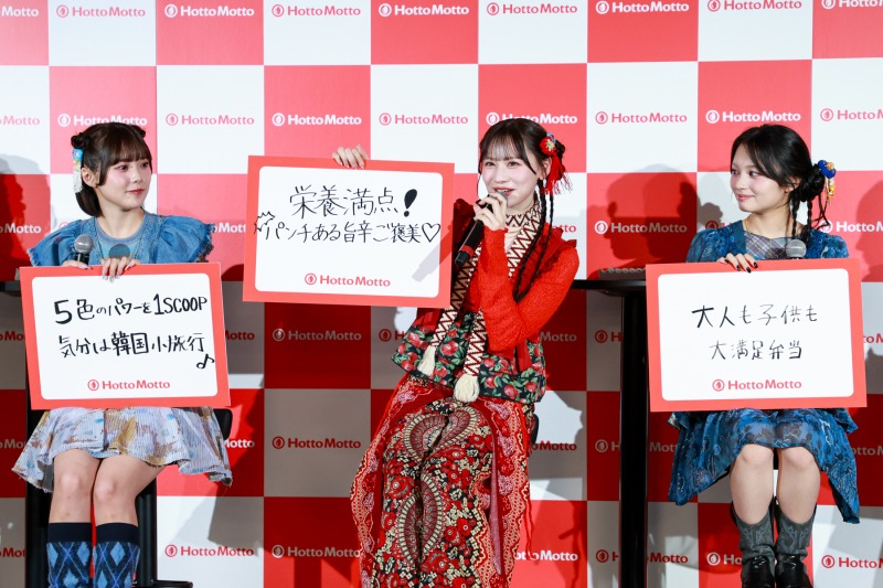 発表会では、新商品「焼肉ビビンバ」の商品概要を説明後、CANDY TUNE7名によるトークセッションを実施。CANDY TUNEのメンバーから、ほっともっとのCMキャラクターに決まった時の感想や、CM撮影中の撮影秘話などが明かされた。