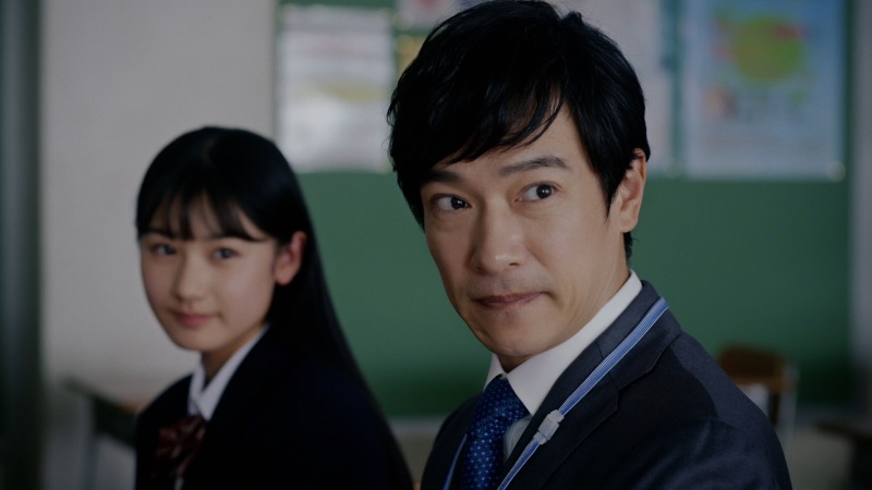 『マイホームマン』は、堺さん演じるサラリーマンの家内守が、夢のマイホームを守るためにバッジを使って巨大化し、街に現れた“かいじゅう”と戦うCMシリーズです。今回は、娘・ちかの進路に関わる三者面談の日が舞台。放課後の教室で待つ担任のアッキー先生の前に現れたのは、守とちかの二人だけです。「お母様は?」と聞かれ、「共働きというか…、共守りというか…」と言葉を濁す守とちか。窓の外では、巨大化した安子が布団叩きと大根を手にしながら“かいじゅう”の前に立ちはだかっていました。