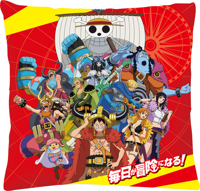 オリジナルクッションは、麦わらの一味を描いた「45cm×45cm」のボリュームあるデザイン。レシートや利用明細はキャンペーン期間中の購入が対象で、抽選で300名にプレゼントされる。