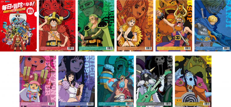 特典のクリアファイルは、表面は集合ショット、裏面は麦わらの一味のメンバーがそれぞれ一人ずつ描かれた全10種類のデザイン。どのキャラクターが当たるか分からない仕様も、ファンのコレクション欲を刺激するポイントだ。