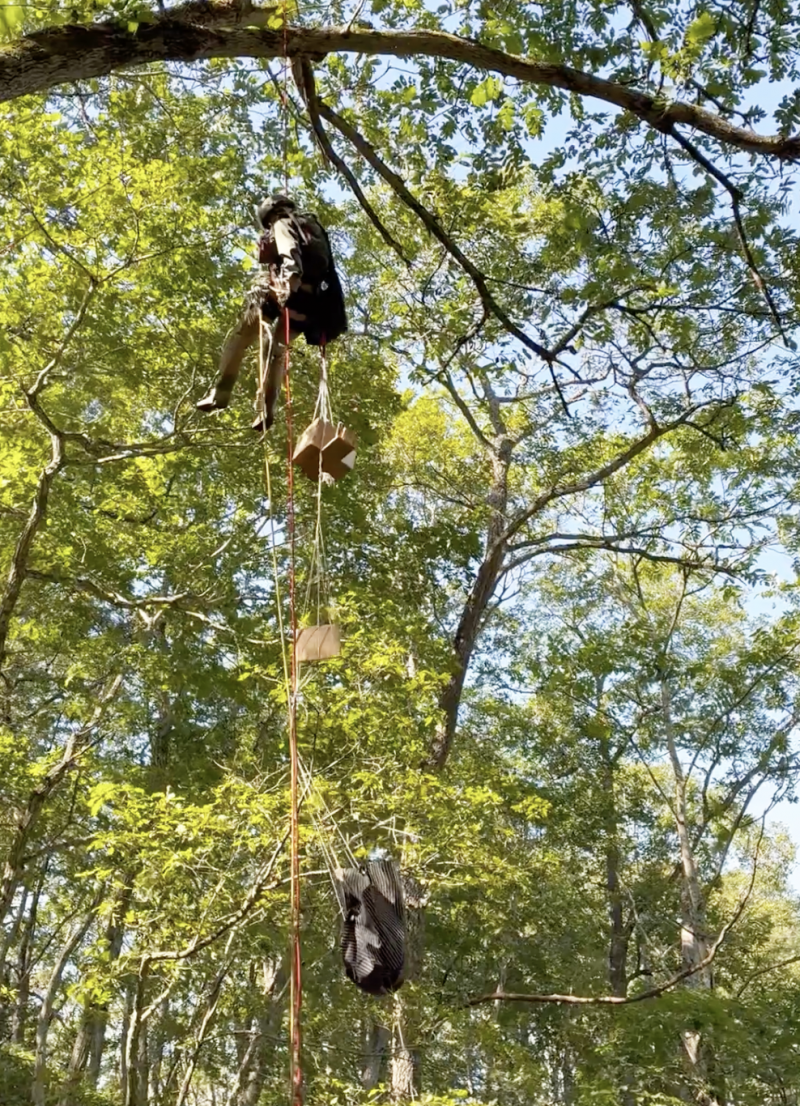 GNSS(全地球航法衛星システム)によって位置を特定し、現地に向かうと、機体は木の上に引っかかっていました。プロジェクトチームは事前に用意していた安全対策を徹底し、自然環境に配慮しながら無事にスタッフが装置を回収。その後に撮影データを確認しました。