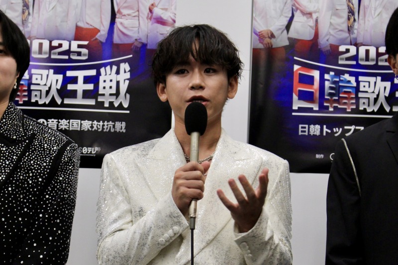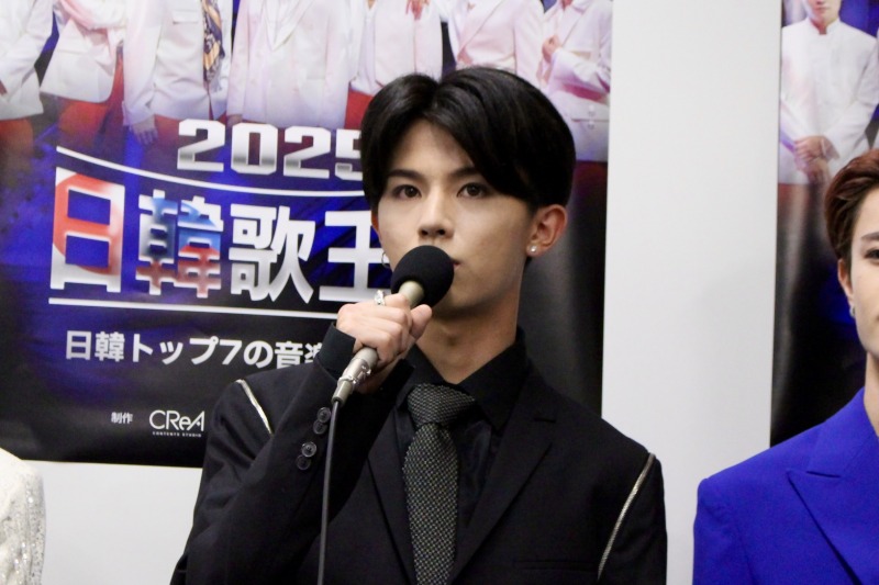 竹中雄大は、「僕が所属するNovelbrightは韓国でもライブを行っていて、もっと有名になりたいという思いで今回挑戦しました。日本で初めて放送される番組なので、期待半分不安半分だったのですが、SNSでも反響を呼んでいて、たくさんの方から『すごいね』『見たよ』と言ってもらえて挑戦してよかったです」と挨拶。2025 日韓歌王戦の見どころについては、「TAKUYAくんがいい表情をしていて、かなり抜かれているので要チェックかなと思います」と明かした。