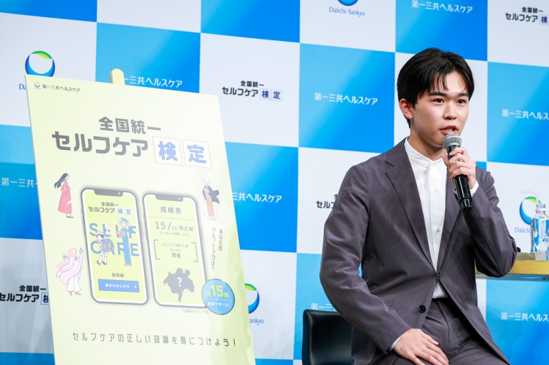 また、同日に第一三共ヘルスケア「全国統一 セルフケア検定」公開記念イベントが開催され、“セルフケア”という言葉は知っているものの、実際に「何をすればよいのか分からない」という声が多く上がったZ世代を代表して、現役大学生の俳優の鈴木福が登壇し、自身の「セルフケア」について語った。