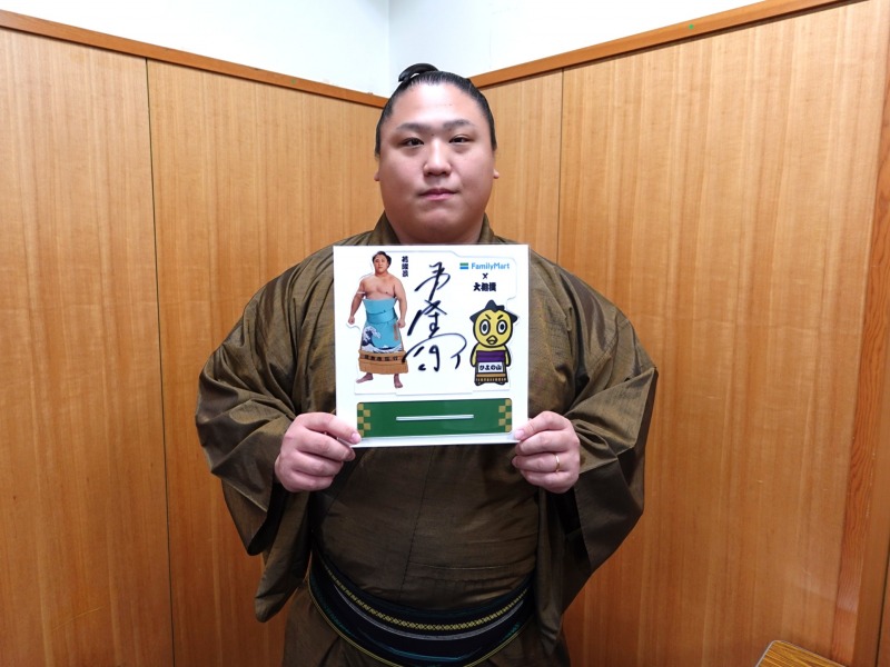 「本場所前の勝負メシはありますか?」と問われると、阿炎関は「僕は納豆が好きで、部屋の近くにファミリーマートがあるんですけど、ファミマの何本か入っている納豆巻きが好きでよく食べています」と返答。最後は「令和七年大相撲十一月場所(九州場所)の意気込み」を聞かれ、「皆さんが喜んでくれるような結果を出したいと思っているので、応援よろしくお願いします」と力強く答えました。