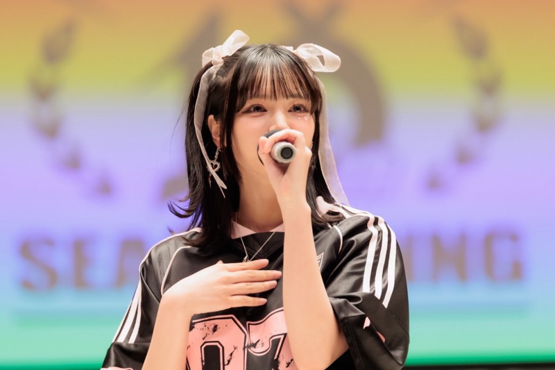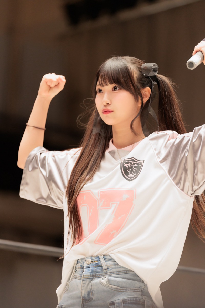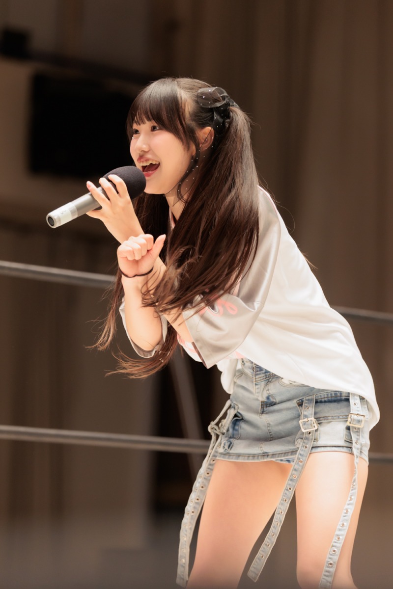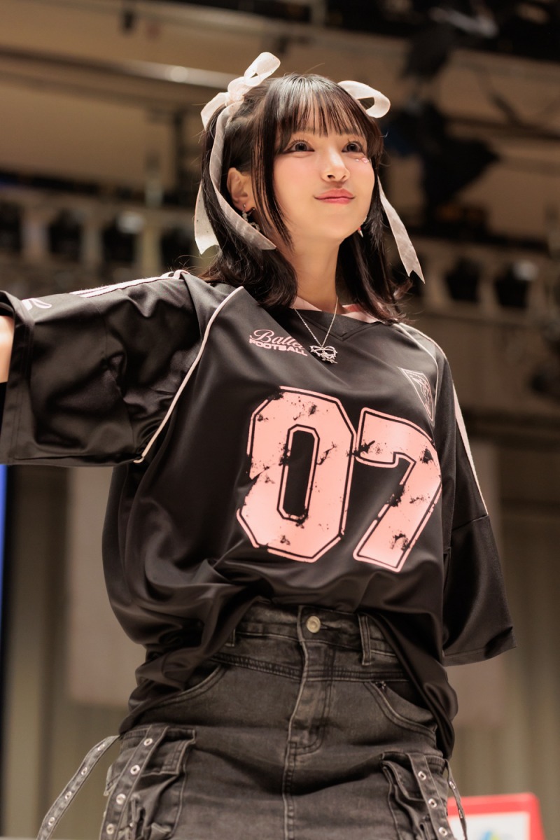 重厚なテクノサウンドが会場に響き渡り、一見その場には不似合いに思えるようなキュートな振り付けと歌声が後楽園ホールを包み込む。曲終わりに自己紹介をはさむなかで、高島が「モノマネをします!」と提案すると、同作の主人公・キン肉マンの決め台詞「へのツッパリはいらんですよ」を披露。初ステージでのいきなりモノマネに度肝を抜かれる思いだった。