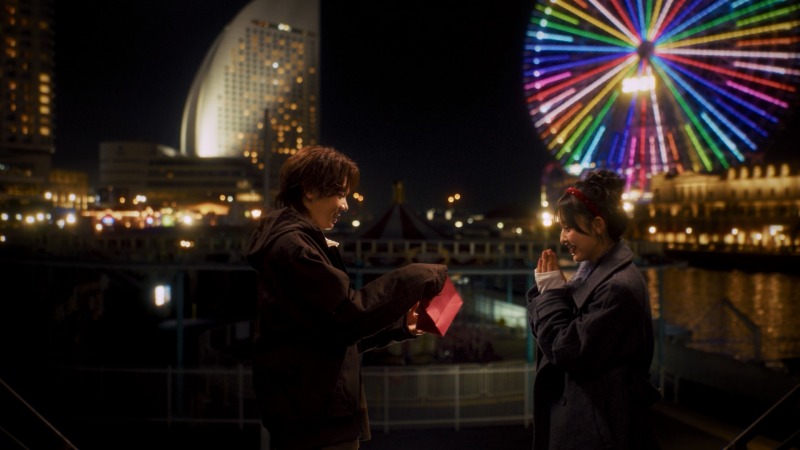 “きんりの”カップルは、イルミネーションが点灯する観覧⾞の前で待ち合わせ 。内⽥さんが「⾔葉遣いが優しい。⼀つ⼀つの⾔葉に気持ちがこもっていて、⼀緒にいて気が合う」と溺愛する多⽥さんに渡したのは、4⾊のカラフルな「ガーナチョコレート」とトッピングが映える「KAWAIIチョコ」でした。