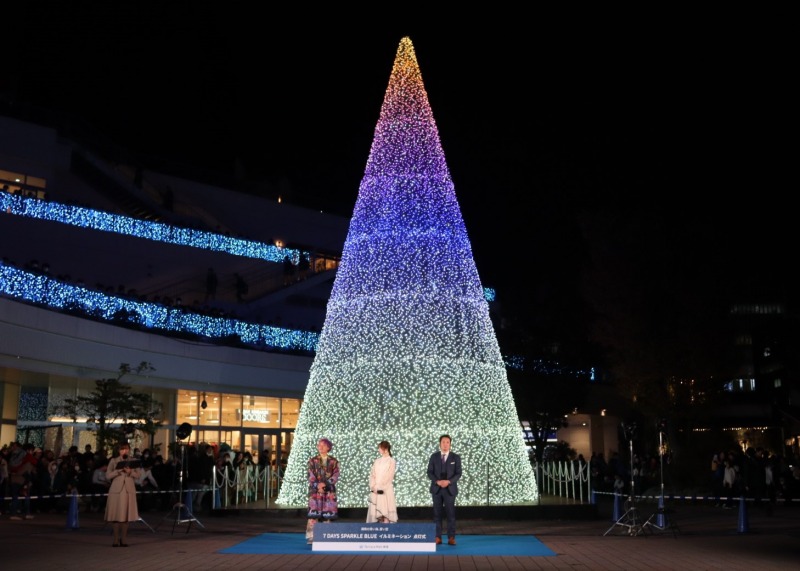相澤氏は「テラスモール湘南のイルミネーションは、毎年湘南の青い空、青い海をテーマにしております。今年はSEVEN DAYS Sparkle Blue ということで、湘南の空をイメージしたLED約25万球、高さ15mの巨大なツリーとなっております。毎日色が変化していきますので、ぜひ毎日お越しいただいて、違う色のツリーをお楽しみいただければ」と語った。