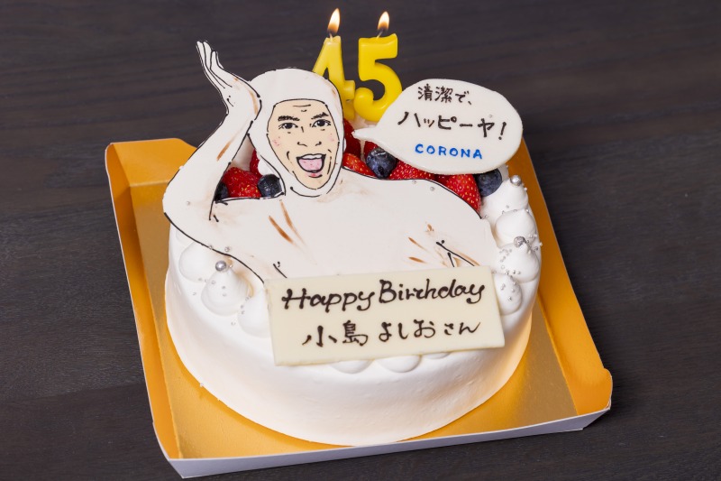 また、小島よしおさんの誕生日(11月16日)が近いことから、撮影終了後に⼩島さんの姿を模したプレートが乗った特製バースデーケーキがサプライズで登場しました。