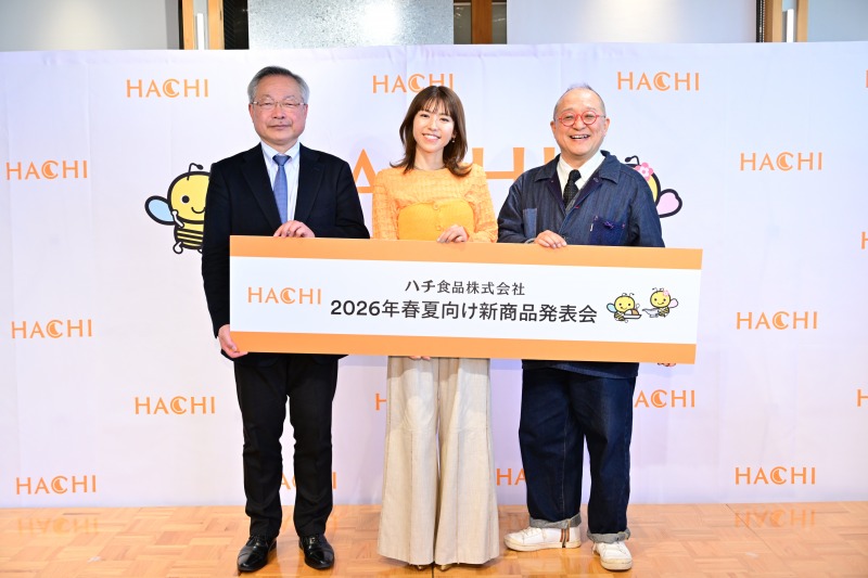 タレントの若槻千夏が18日、都内で実施された「ハチ食品 2026年春夏向け新商品発表会」にハチ食品株式会社 代表取締役社長・高橋慎一、株式会社オールスパイス レストランHACHI代表取締役会長・角田秀晴氏らと参加した。