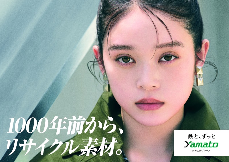 CMでは、大和工業の主力製品である「H形鋼」をイメージして制作した全長約6mの木製オブジェの前に髙石あかりさんが登場。「鉄は1000 年前からリサイクル素材」であることや、「何度でも生まれ変われる」「強くしなやか」など、鉄の特性と企業・社員の姿勢を重ねて、印象的に力強く伝えています。