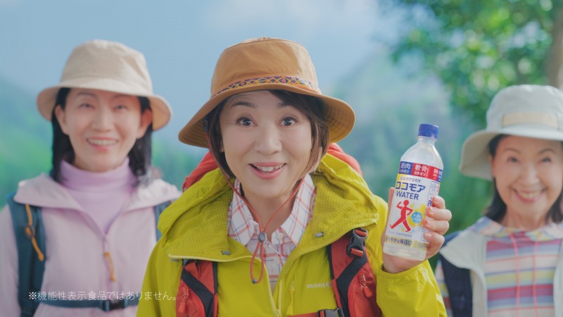 CMは、ハイキング中の片平さんや銭湯上がりの田中さんの前に、伊藤さんが「ロコモア WATER」と「セサミン 1000」を手に現れるところから始まります。「♪サ・サ・サプリが飲み物に〜」と歌い始める伊藤さんに、片平さんが「ってことは?」、田中さんが「ここでも?」と合いの手を入れ、テンポのいい掛け合いが展開されます。