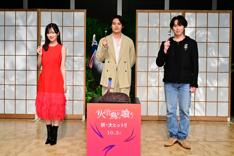 作家・原浩氏による第40回横溝正史ミステリ&ホラー大賞の大賞受賞作を実写映画化した『火喰鳥を、喰う』(10月3日全国公開)。その大ヒット祈願イベントが9月23日に都内ホールで実施され、主演の水上恒司、共演の山下美月、宮舘涼太(Snow Man)が参加した。