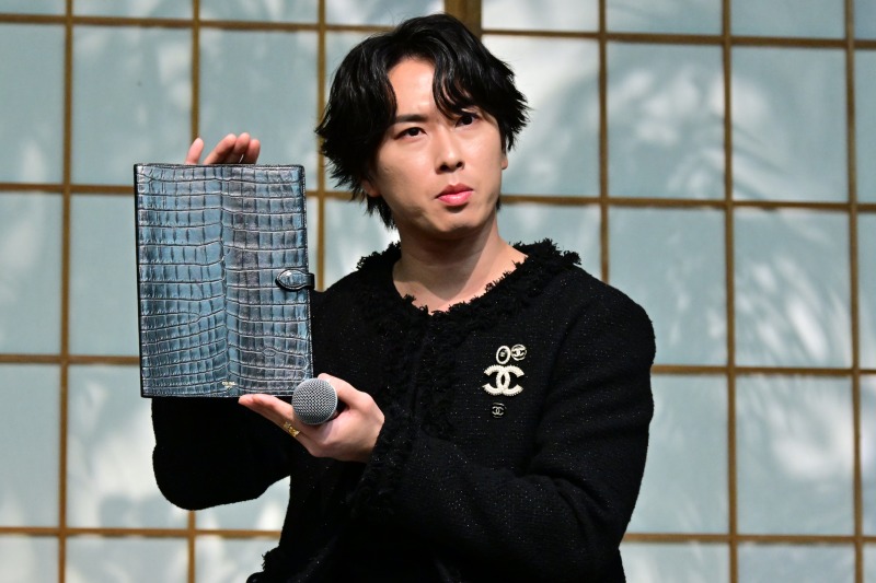宮館はワニ革の台本カバーを持参。「本作撮影時にも使用していて、お二人ともこの台本カバーをきっかけにお話しをするようになった。僕はこれを違う作品でも使用していて、共に歩いて行こうと決めて常に鞄の中に入っています。もっとボロボロにして味を出したいという思いも込められた台本カバーです」と紹介した。