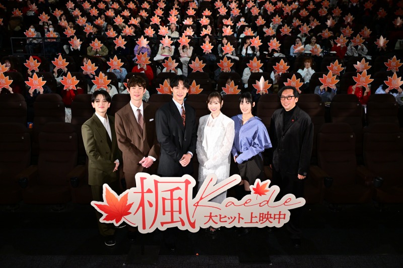 スピッツの名曲から誕生した、この冬一番の感動のラブストーリー『楓』がついに全国公開!初日翌日の12月20日には公開記念舞台挨拶が実施され、W主演の福士蒼汰と福原遥、共演の宮沢氷魚、石井杏奈、宮近海斗、そして行定勲監督が登壇した。