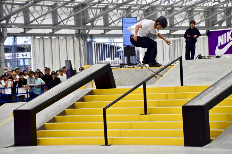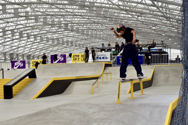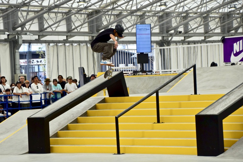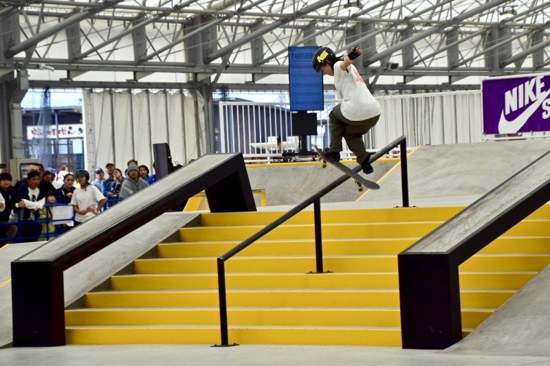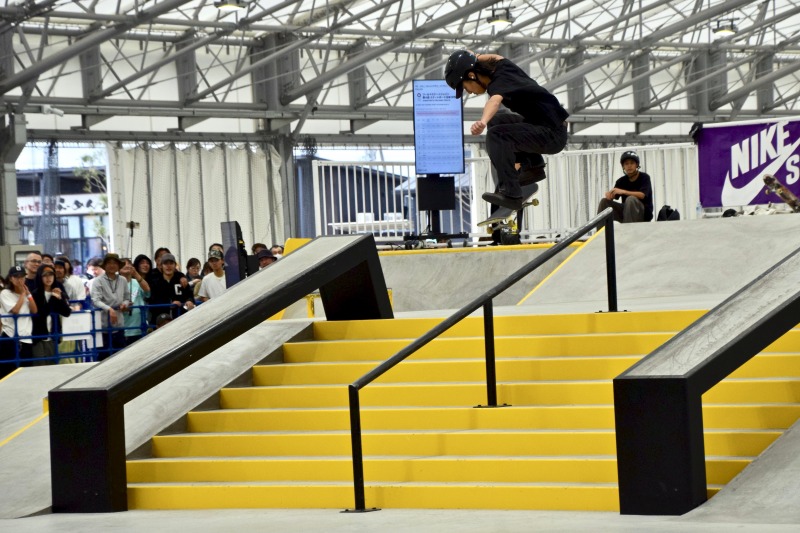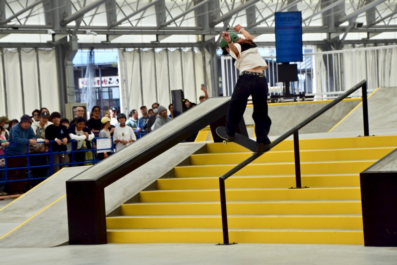 最後の最後に大技のキャバレリアルキックフリップ バックサイドリップスライドを決めきって大会を締めくくった。
