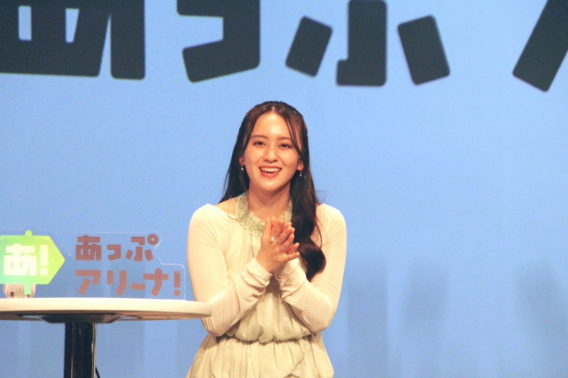 発表会後半では、岡田結実さんと武田真治さんが登壇し、実際にサービスを体験した。