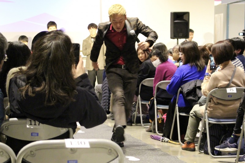 トークショー後半では歩幅当てクイズも実施。会場には足のサイズ33cm、9.58の記録を持つウサイン・ボルト選手の歩幅を体感できるマットが用意され、じゅんと来場者2名がクイズに参加。ボルト選手の歩幅、2m86cmに1番近い回答をした参加者に、坂井選手から3名のサイン入り色紙が手渡された。