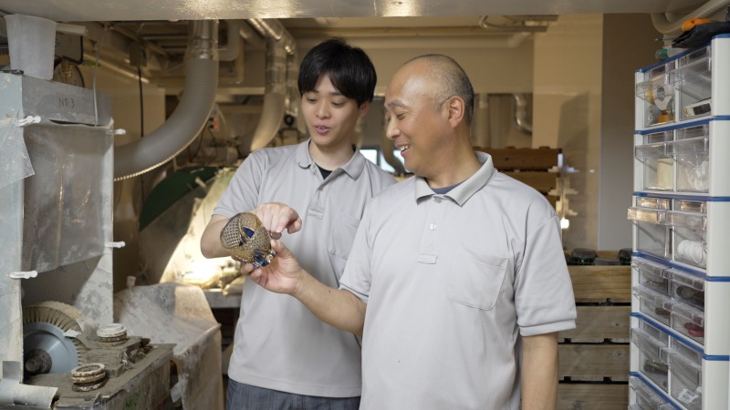 伝統工芸士として数々の賞を受賞し独創的な江戸切子を作り上げてきました。そしてその技術と伝統を受け継ぎ、新しい形の江戸切子を生み出す、鍋谷海斗氏。親子ふたりで手がけた作品になります。