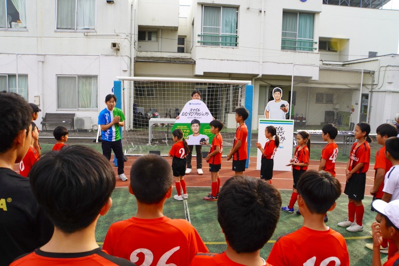 今回選ばれた東京三育小学校のサッカー部はこの学校の教師でもあり、部活の監督の中村 淳さんが偶然にネットで見かけて応募。児童が合計100人と小さな学校のため、休み時間は1年生から6年生までみんな混ざって校庭で遊ぶのが日課だった。そんな中、コロナ禍で分散登校や休み時間も学年ごとになってしまい他学年との交流が少なくなってしまった。それが続いたことで生徒も寂しそうだったので、中村さんがダメもとで校長先生にサッカー部の立ち上げを提案したところ、校長先生が二つ返事で了承してくれ、発足となった。