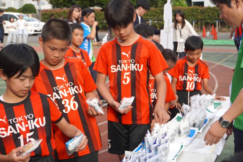 そして、スポーツの日の前日、2025年10月12日(日)に、「スマイルおむすびプロジェクト」おむすび贈呈式が行われた。今回、見事に選ばれた東京三育小学校 サッカー部へサプライズでおむすびの差し入れがあり実際に見てきたので様子をレポート。