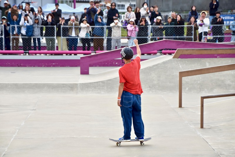 フルスピードからハンマーを次々と決める滑りは、まるで速攻でシュートを決めていくバスケのラン&ガンのようで、見ている者にスケートボードの格好良さとはこれだ!と言わんばかりの滑りで観客を沸かせ、ベストトリックでもしっかりと90点台のトリックをメイクし、見事準優勝に輝いた。