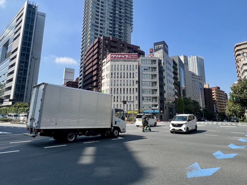 外苑西通りや新宿通りなどが合流する交差点なので、行き先に応じて車線変更する車が多いのですが、車線構造が複雑なので無理な車線変更がよく見られました。初心者や土地勘のないドライバーは、この交差点に入ると車線の複雑さで混乱してしまう恐れがありそうです。