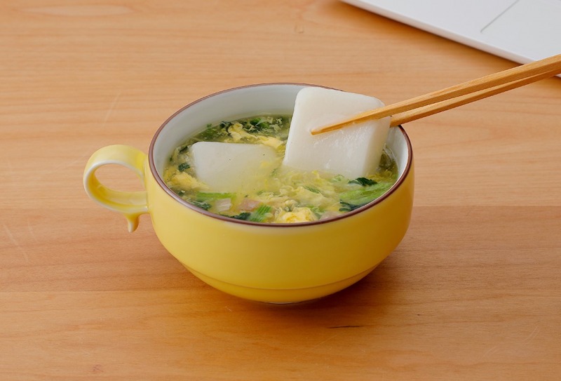 「すうぷもっちー®」は“フリーズドライスープ×お餅”という新しいアイデアから誕生した商品です。腹持ちが良く一食あたり117kcalと必要なエネルギーをしっかりチャージでき、電子レンジのみで完成する手軽さも持ち合わせています。
