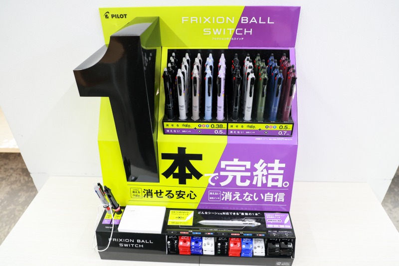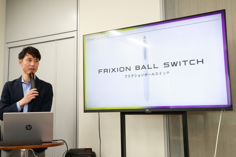 株式会社パイロットコーポレーションは、消せる筆記具「フリクション」シリーズの新商品として、シリーズ初となる「消せる」インキと「消えない」インキを1本に搭載した多機能筆記具「フリクションボールスイッチ」(希望小売価格:880円(税抜:800円)) を3月5日(木)に発売する。発売に先駆けて、メディア向けの新商品説明会が2月10日(火)に開催された。