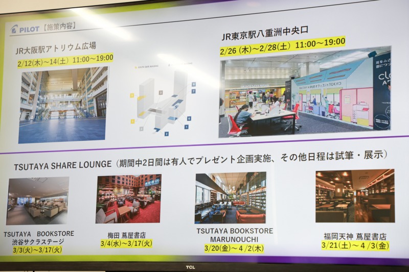 また、「駅=旅立ち・乗り換えの場所」ということから、「現在使っているペンから新しいペンに乗り換えてもらう」という意味を込めて、抽選で「フリクションボールスイッチ」がプレゼントされる。上記2か所以外にも、全国のTSUTAYA SHARE LOUNGEでも体験イベントが開催予定となっている。