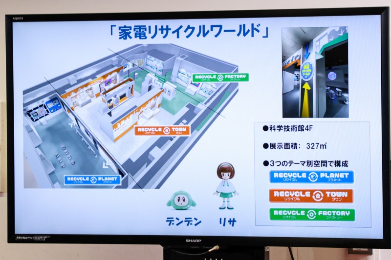 さらに、普段見ることができない、家電リサイクル工場(リサイクルプラント)で廃家電がどのように再生素材に生まれ変わるかを臨場感あふれる潜入映像で紹介。リニューアルによって、新たな啓発ブースは家電リサイクルが環境負荷を減らし、持続可能な社会を築くための一歩を示す空間へと生まれ変わった。