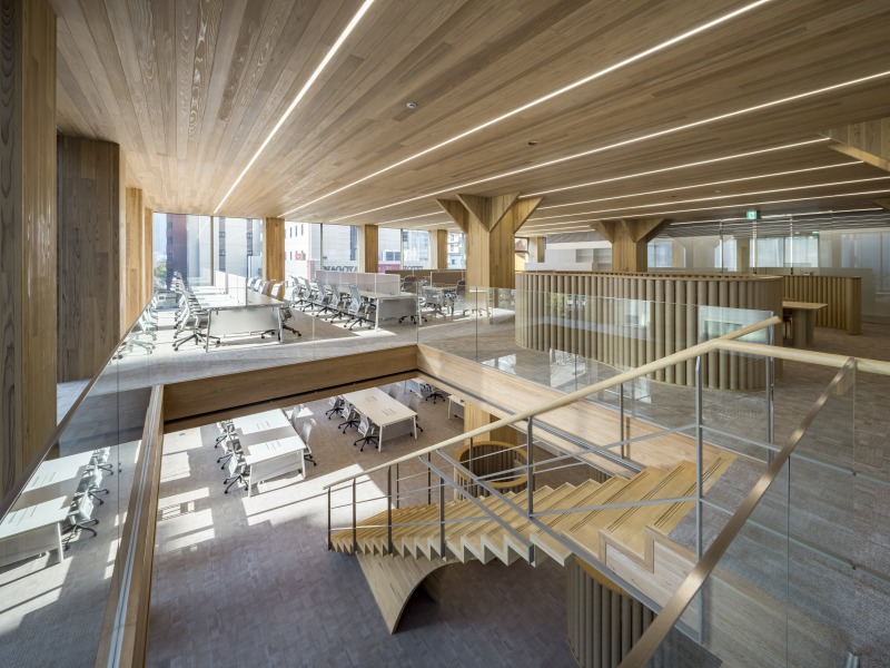森實社長は、「まだ日本では件数が少ないというところで、多少、コスト高という面もあるが、それ以上に日本における“木質免震構造オフィスビル”という新しいモデルを示せた。自然を感じる木質のオフィスだけでなく、リフレッシュできるサウナ施設などもあり、働く皆さんも健康や環境に対する意識が高くなっていると思う。たくさんのコミュニケーションとアイディアが生まれて、皆が誇りを持って働ける場所になってほしい」と期待します。