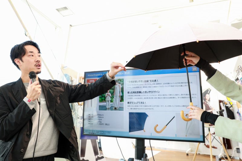 また、Waterfrontの日傘の売れ行きとしては、市場の拡大に伴い、同社の日傘の売上シェアも拡大し、商品ラインナップも日傘の割合が増加している。機能面では、UVカット率だけでなく、遮熱性能や耐風性能、携帯性などのプラスアルファがあるものが人気だという。
