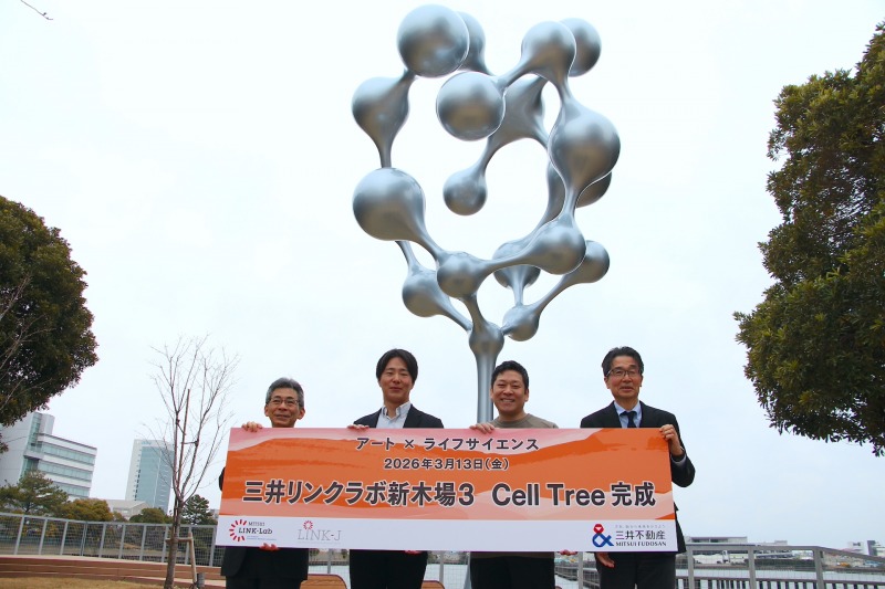 貯木場の街・新木場がいま、日本のライフサイエンス産業の新たな拠点として注目を集めている。2026年3月13日、その象徴となる彫刻家・名和晃平氏の新作アート『Cell Tree』が「三井リンクラボ新木場3」でお披露目された。