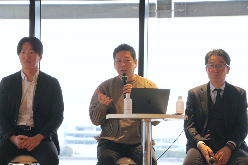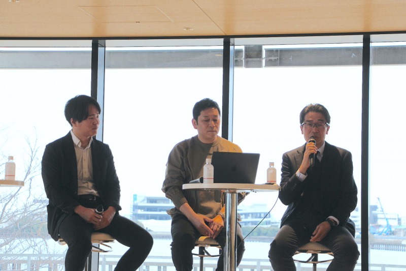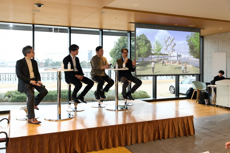 トークセッションでは、名和氏に加え、iPS細胞から卵子を作るという革新的な技術を持つバイオスタートアップ、株式会社Dioseveの岸田和真社長、そして仕掛け人である三井不動産の山下和則常務執行役員が登壇した。