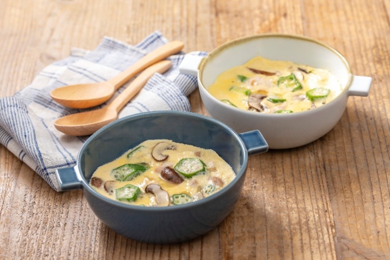 こちらは「胃にやさしく負担をかけずに栄養をとること」を目的とした一品。ヨーグルトは胃酸の刺激をやわらげながら消化しやすい形で栄養素を補給でき、胃への負担を軽減してくれます。また、卵は消化吸収がよく、オクラに含まれるペクチンは粘り成分として胃の粘膜を保護して刺激から守る働きがあります。