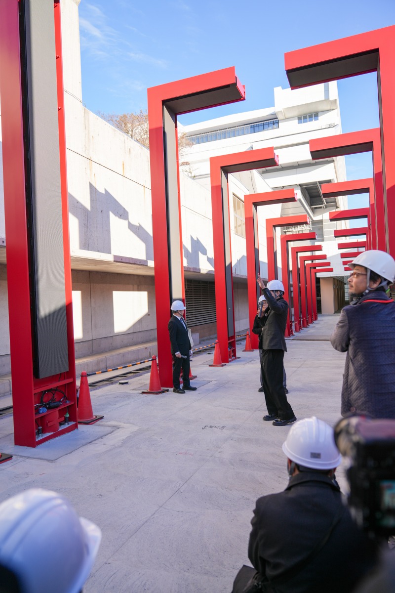 JR両国駅からのアプローチにも注目のポイントがあり、重松さんが監修した「鳥居」を想起させる24本のモニュメントが設置され、現代から江戸時代へといざなうような映像の演出を施し、入場する前からタイムトラベルしたかのような没入感を高めてくれます。