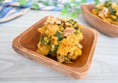 かぼちゃの甘味にツナの旨みとナッツの香ばしさがマッチしたサラダ。かぼちゃに豊富なβ-カロテン(ビタミンA)が皮膚や粘膜の健康維持をサポートし、ビタミンCが酸化ストレスを抑え、体や肌の調子をサポートします。さらに、ツナやナッツに含まれるn3系脂肪酸(EPA・DHA)も、皮膚の構造や健康を保つ栄養素です。 彩りもよく、作り置きも可能で忙しい日でも手軽に栄養を補給できるのが魅力のサラダです。
