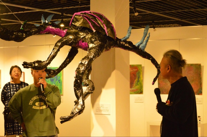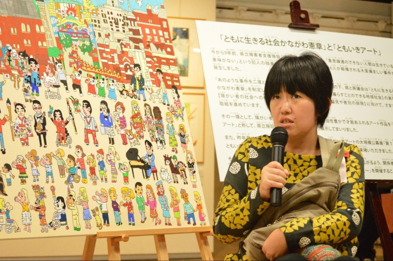 中津川氏は「障がい者アートは、作品見て良いなと思って背景を調べると(描くにあたった)ストーリーが良いんですよね。ストーリーを読んで初めて作品の意味とか込められた思いがはっきり見えてくる。一般の美術だと、美術史とかコンテストのコンセプトがあって見るばそれが分かってくるんですけど、障がい者アートはそういうコンセプトとは無関係にみなさん作品を創っているので、どちらかというと個人的な背景の物語を知ることが作品を知る手がかりになっていくんだろうなと思います」と解説した。