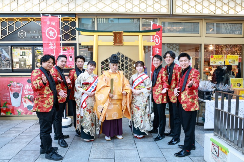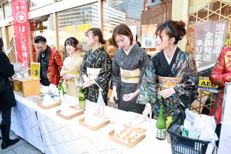 イベントに参加した水戸の梅大使、いばらき若旦那、銀座の女将は、それぞれほしいも神社の宮司より祈祷を受けた。他にも、この日限定で「ほしいもみくじ」を引くことができ、銀座の料亭などと協力して実施される「春のいばらき 地酒フェア in 銀座」で扱われる純米吟醸酒と梅酒が、銀座の女将たちにより来店客に提供され試飲することができた。