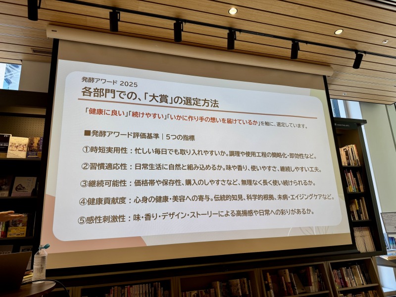 また、日本国内の発酵食品・飲料市場は年々拡大し、健康志向の高まりとともに、今後も成長が見込まれると語った。次いで、大久保氏より「発酵アワード2025」の発表が行われた。