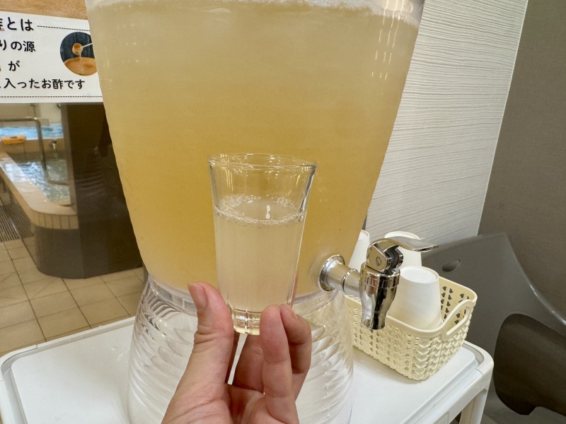 そしてそんな健康的な湯上がりに、にごり酢を飲むと相乗効果もうまれそうだ。にごり酢×にごり湯によってカラダが整うと常連にも大人気。