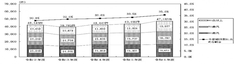 近年、高齢者をターゲットとした悪質商法の被害は増加傾向にあります。東京都や都内区市町村に寄せられた60歳以上の高齢者の相談件数は令和6年度に約4万7千件となり、相談全体の35%を超えているそうです。