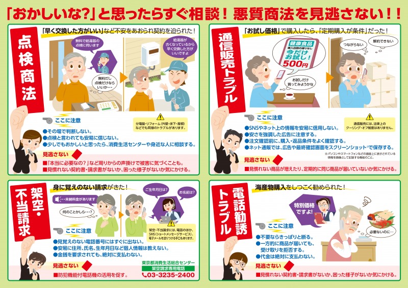 これを受け、東京都では9月を「高齢者悪質商法被害防止キャンペーン月間」とし、悪質商法への取組を強化していきます。